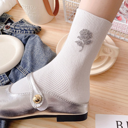 Calzini da donna di lusso Mid-Tube all'ingrosso di colore solido glitterato in cotone traspirante in maglia di uso quotidiano calzini